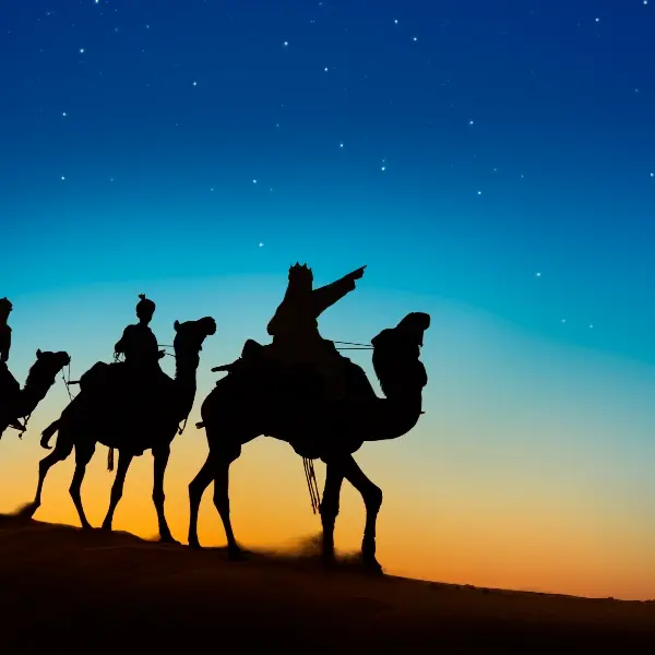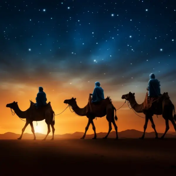 Después del desayuno buffet o picnic (según horario), salida por carretera en dirección al Desierto Occidental. Llegada a Bawiti, población principal del Oasis de Bahariya. Aquí cambiaremos de vehículo para continuar en 4×4 hasta el Desierto Blanco. Pararemos para almorzar en el pequeño oasis de El Heiz, donde podremos disfrutar de un baño en una de sus fuentes de aguas sulfurosas y calientes. Tras la comida, continuaremos nuestro recorrido con una visita a la Montaña de Cristal. Llegada al Desierto Blanco, donde contemplaremos sus fantásticas formaciones rocosas, que adquieren un aspecto mágico al atardecer. Aquí tendrá lugar el esperado encuentro con los Reyes Magos, que llegarán montados en sus majestuosos camellos. Los niños tendrán la oportunidad de conocer a Melchor, Gaspar y Baltasar, entregarles su carta de deseos en un auténtico papiro egipcio y recibir un pequeño detalle de recuerdo por su ayuda en la historia del viaje. Será un momento especial para compartir con ellos, inmortalizar fotos y disfrutar de la magia del desierto al final del día.