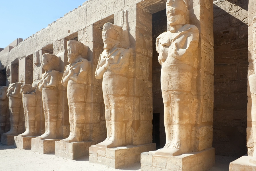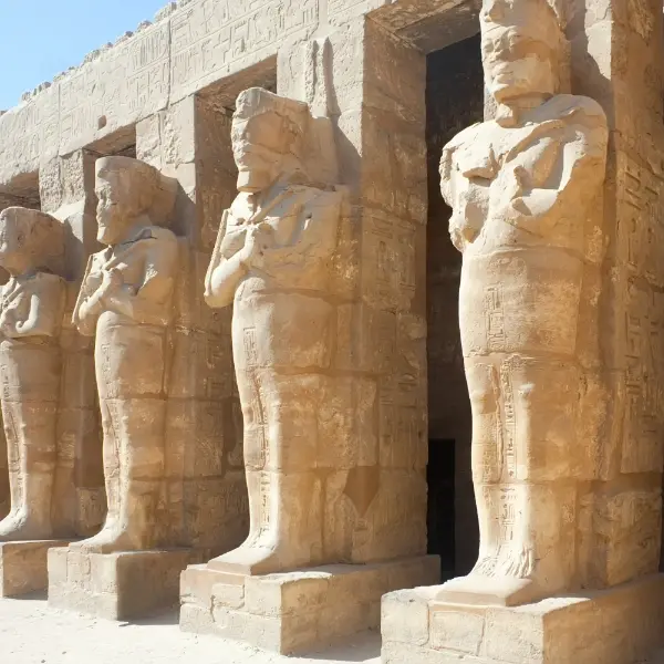 Después del desayuno y el check-out, nuestra primera parada nos llevará al Valle de los Reyes y a las necrópolis de Tebas, donde se encuentra la famosa tumba de Tutankamón. Posteriormente, visitaremos el templo de la Reina Hatshepsut, dedicado a la única mujer que reinó en Egipto, quien curiosamente se representaba con barba para parecerse a un faraón. A continuación, exploraremos el templo de Deir El Bahari y los impresionantes Colosos de Memnón. Continuando con el recorrido, llegaremos al complejo religioso de Karnak, el segundo lugar más visitado de Egipto. Sus templos destacan por su valor histórico y por la forma en que fueron construidos, comenzando por el santuario central y ampliándose hacia las zonas exteriores. Tras esta visita, seremos trasladados al aeropuerto para tomar el vuelo con destino a El Cairo, donde se realizará la llegada y el traslado al hotel.